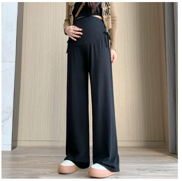 孕妇裤子春秋款外穿阔腿裤抽绳小个子孕早期春夏季休闲裤一件代发