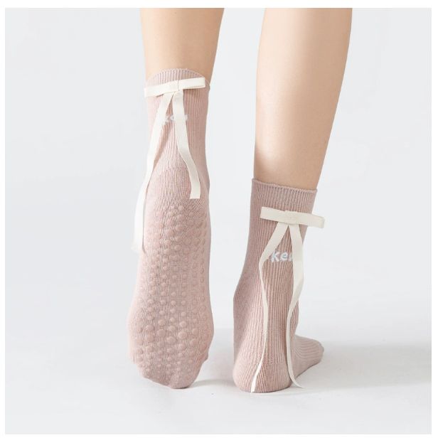 春秋新款蝴蝶结小腿瑜伽袜棉袜洋气百搭硅胶防滑普拉提袜健身跑步