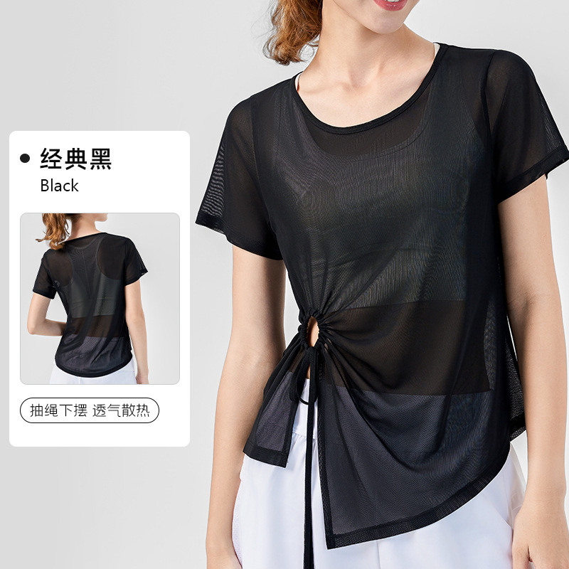 夏季新款透气冰丝凉感跑步健身上衣速干百搭女款网纱瑜伽罩衫短袖