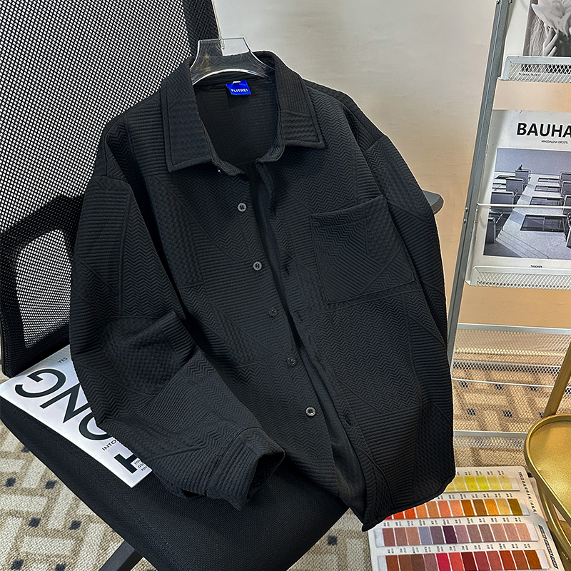2025春秋提花长袖衬衫男日系复古港风休闲潮牌痞帅设计感小众衬衫