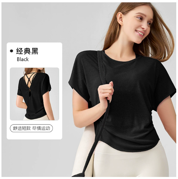 夏季高级感透气普拉提瑜伽服短袖美背薄款褶皱收腰健身运动罩衫女