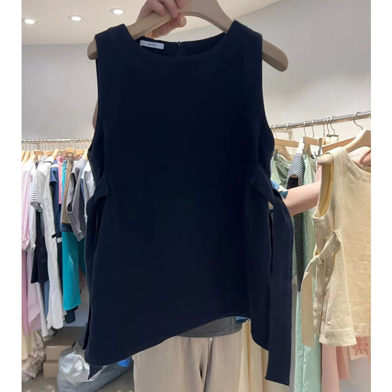 广州十三行2025夏季款套头圆领设计感蝴蝶系带侧纽扣无袖衬衣背心
