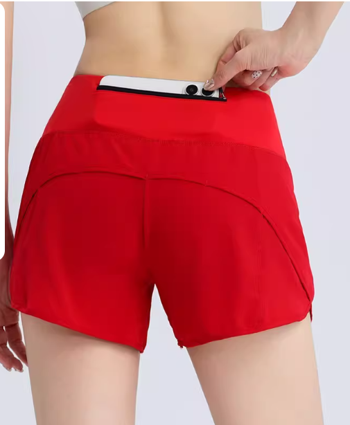 速干运动短裤女假两件马拉松跑步短裤带腰包训练健身短裤后口袋