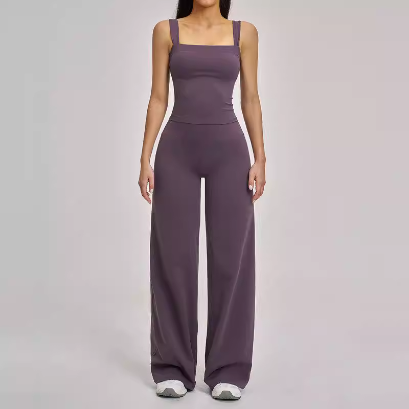 2026磨毛瑜伽套装直筒阔腿运动背心套装外穿速干运动休闲女两件套