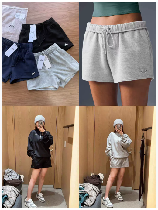 现货ALO短裤运动健身训练瑜伽黑色短裤女士高腰收腹提臀三分热裤