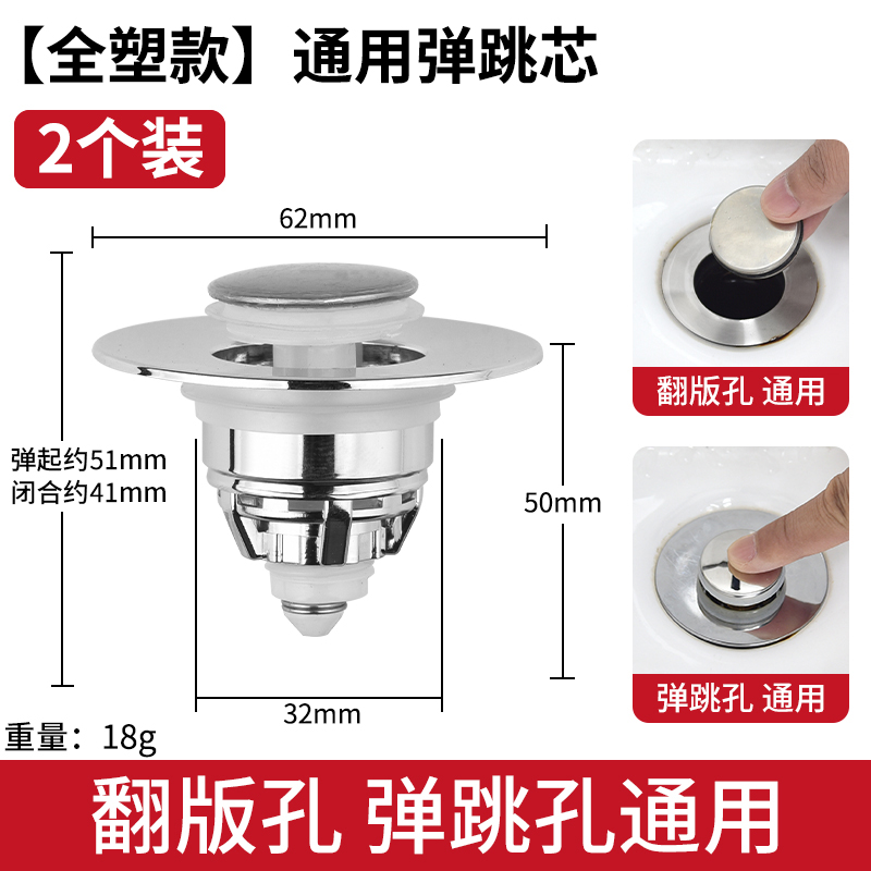 洗手盆面盆塞子下水器弹跳芯洗脸盆按压式过滤不锈钢防臭地漏通用