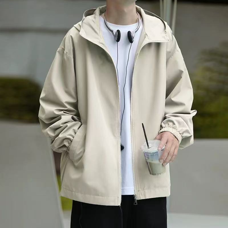 春夏连帽薄款外套冲锋衣男百搭痞帅宽松版休闲潮牌防水防晒夹克