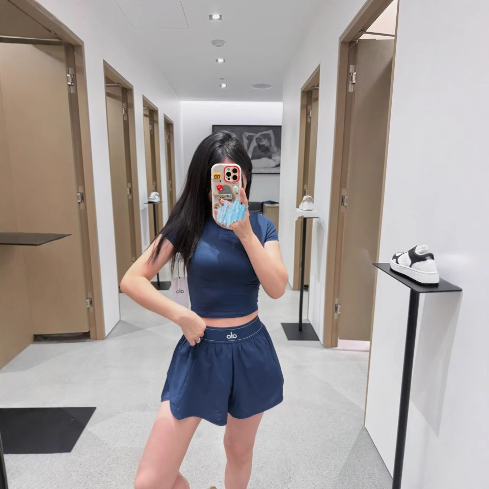 ALO同款裸感透气高腰织带提臀瑜伽健身短裤户外跑步防走光短裤女