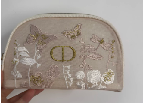 现货!正品蝴蝶刺绣化妆包网纱双层贝壳化妆包金色网纱贝壳化妆包