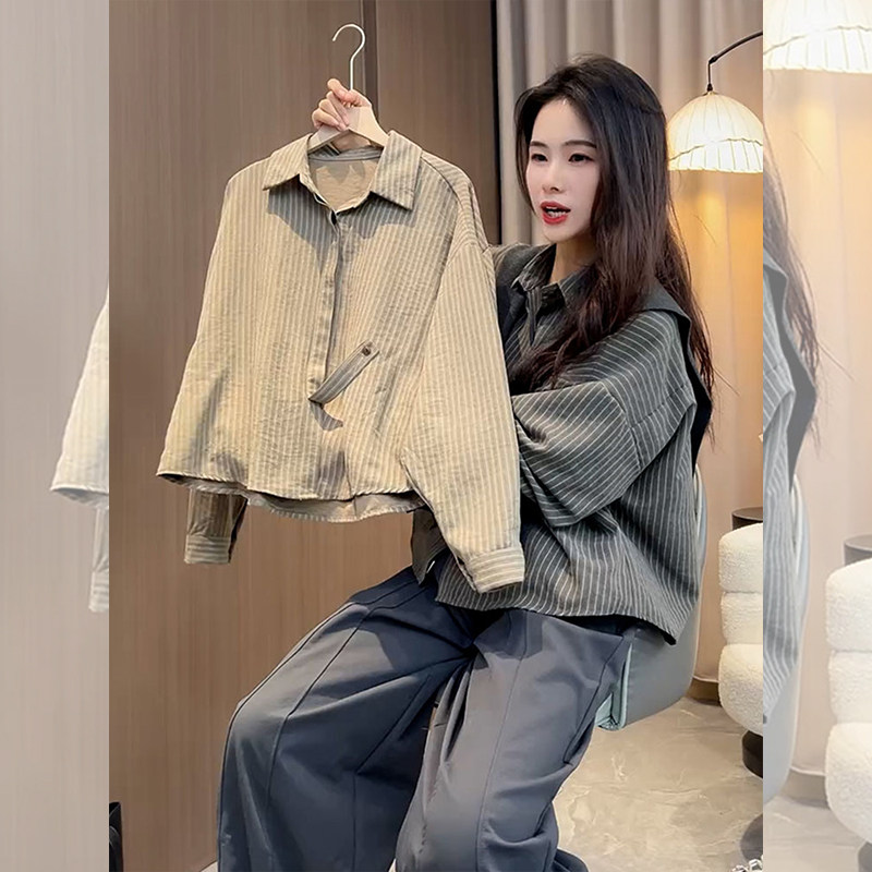 2025年超火洋气减龄高级感超好看上衣别致条纹Polo领长袖衬衫女秋