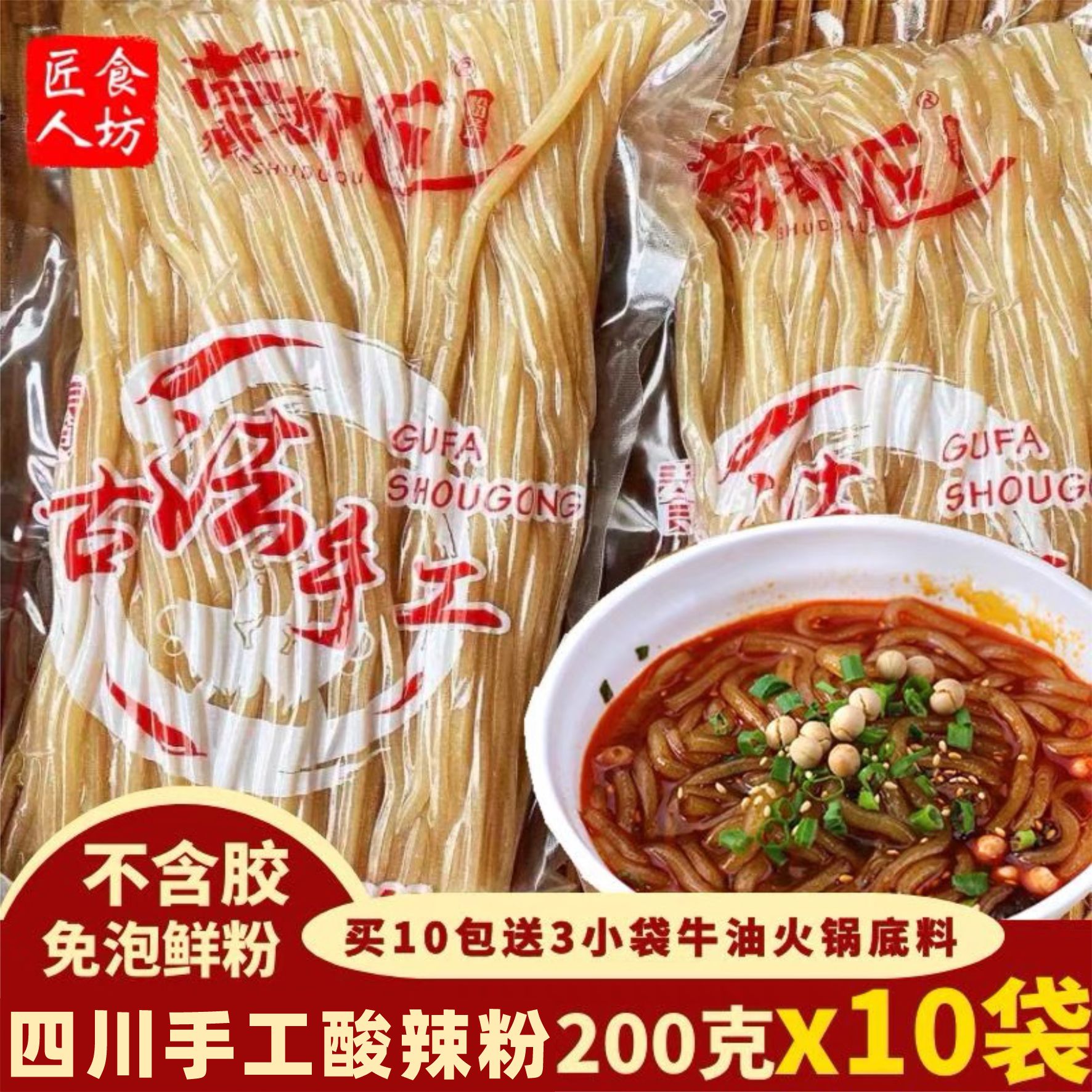 红薯粉酸辣粉粗粉正宗重庆专用粉条调料商用批发免泡袋装手工湿粉