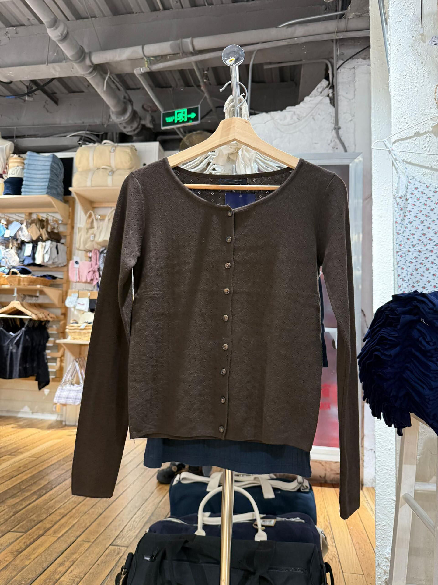 BM新款圆领孔眼镂空长袖针织开衫bm秋冬纯欲气质修身百搭外套上衣