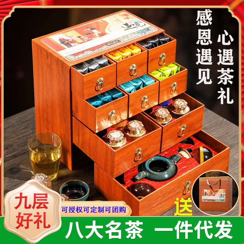 茶叶礼盒装抽屉式组合装礼盒送礼大红袍小种红茶普洱小青柑送茶具