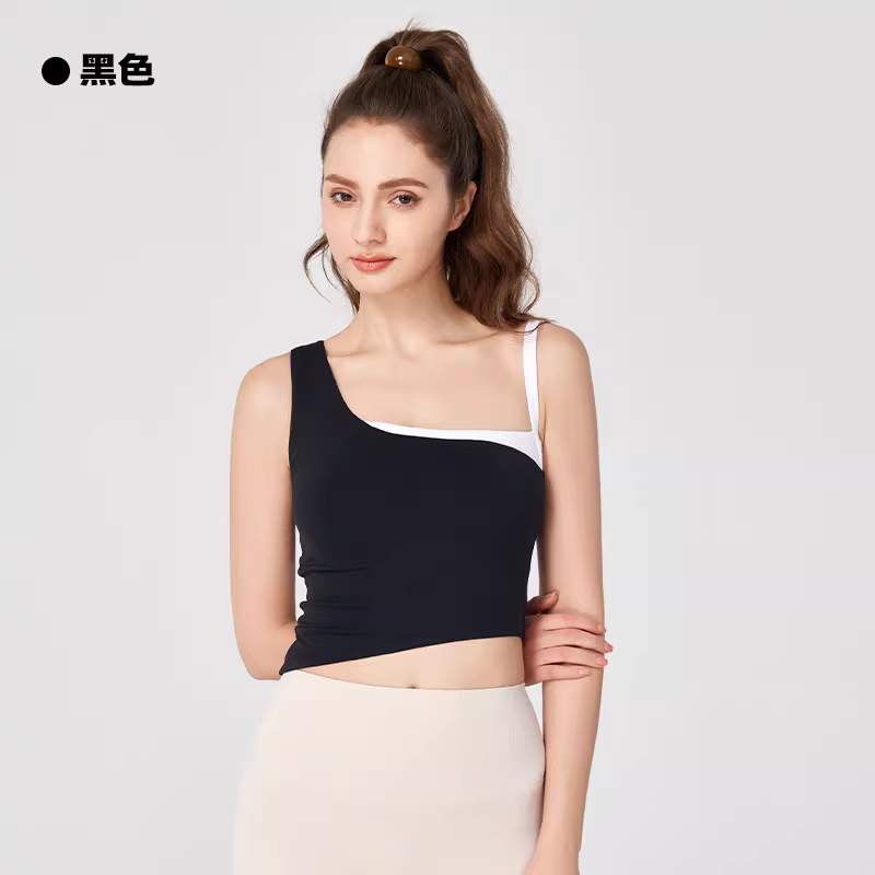 【ToSky】纯欲绝美撞色辣妹瑜伽服上衣不规则无袖背心女高级感