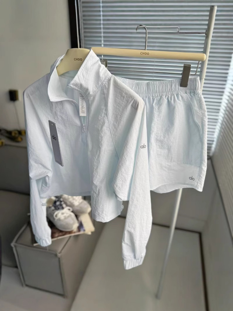 alo防晒衣半拉链外套短款露脐立领套装运动休闲夹克梭织套头女