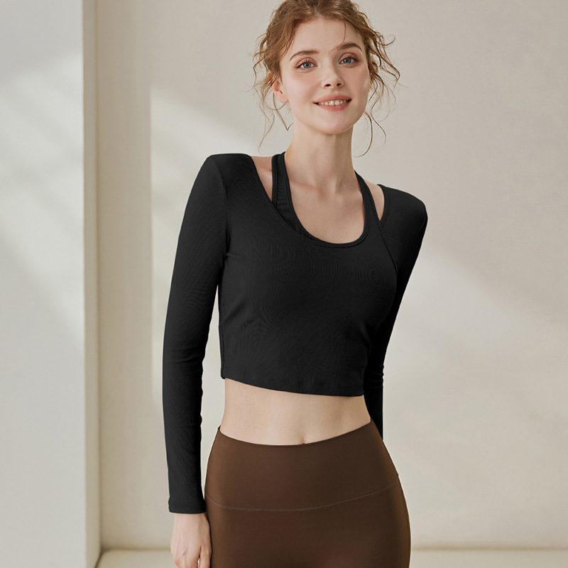 LULUXAIME瑜伽服女2026春季新款挂脖健身服运动带胸垫长袖T恤上衣