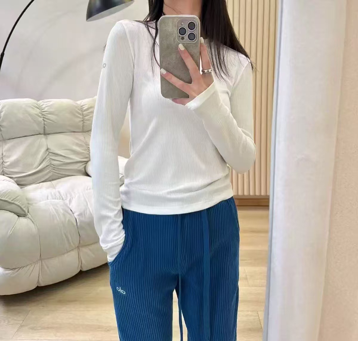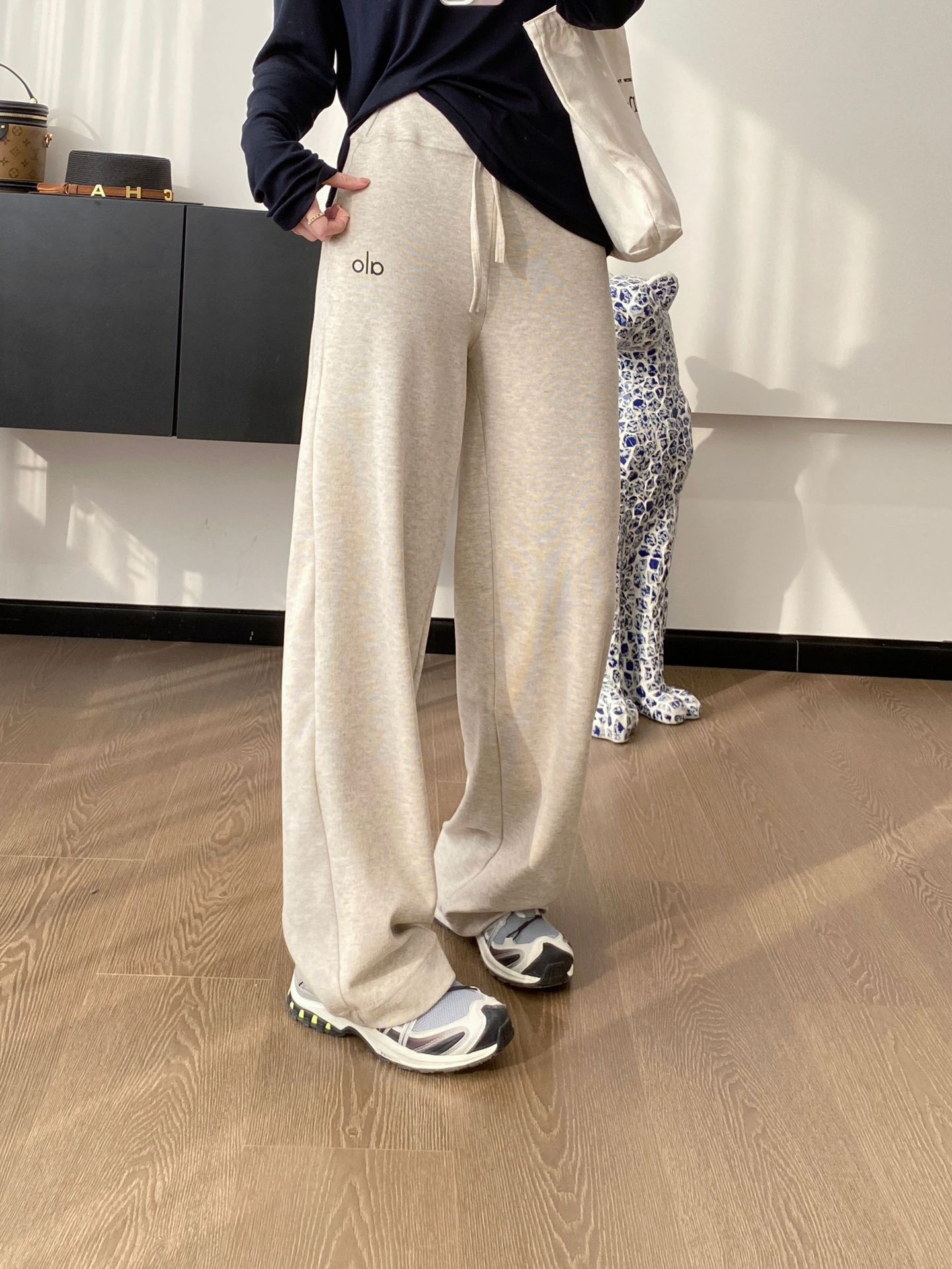 现货alo针织休闲宽松抖抖裤慵懒垂感舒适宽松显瘦百搭高腰阔腿裤