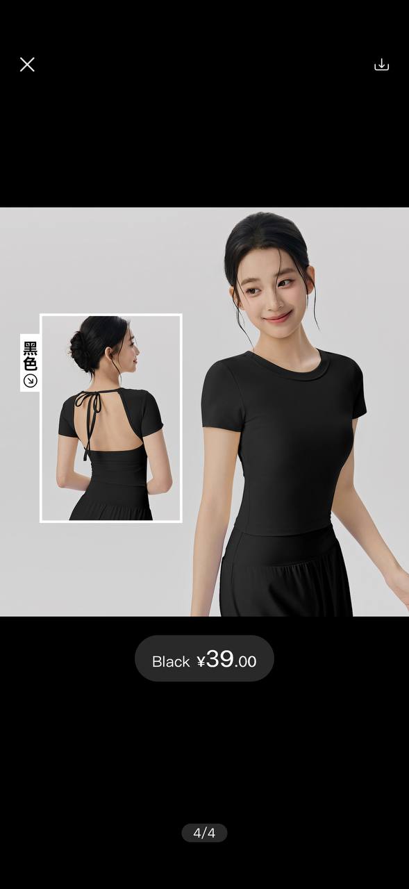 系带露背健身上衣女固定胸垫修身显瘦运动t恤优雅美背瑜伽服短袖