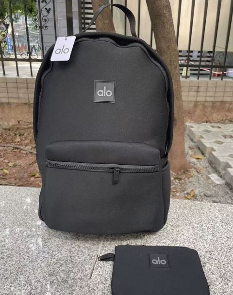 潮牌alo同款防水双肩包哑光氯丁橡胶黑色紧身包布面子母旅行包书