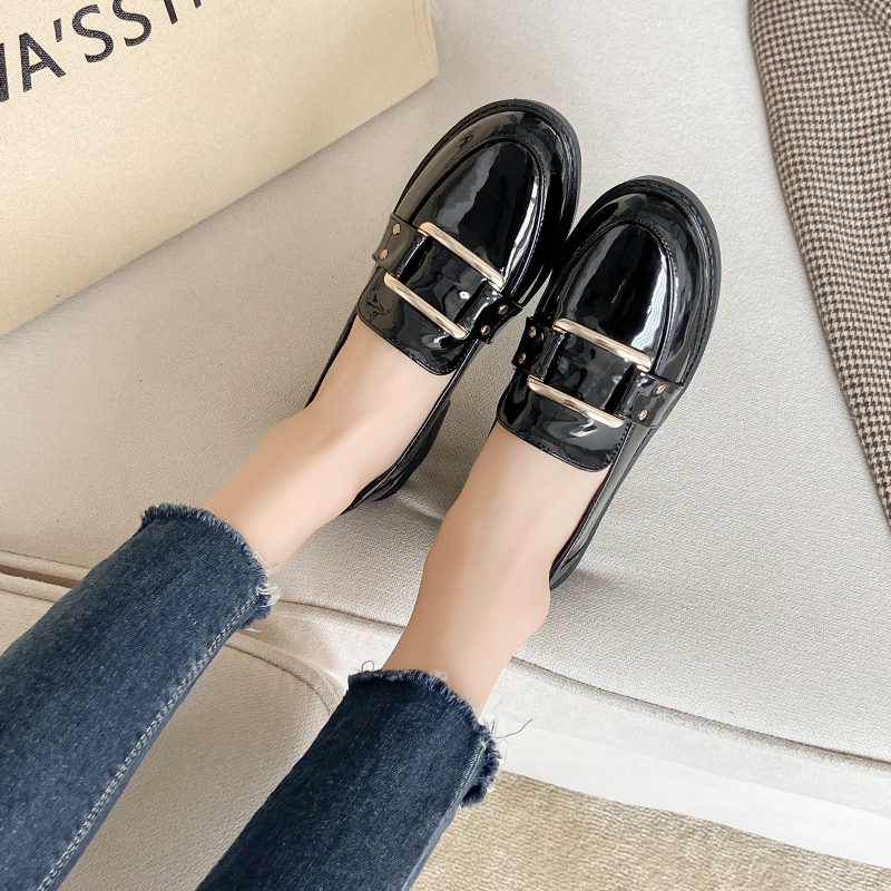 小皮鞋圆头新款春秋百搭简约网红单鞋韩版百搭休闲黑色平底乐福鞋