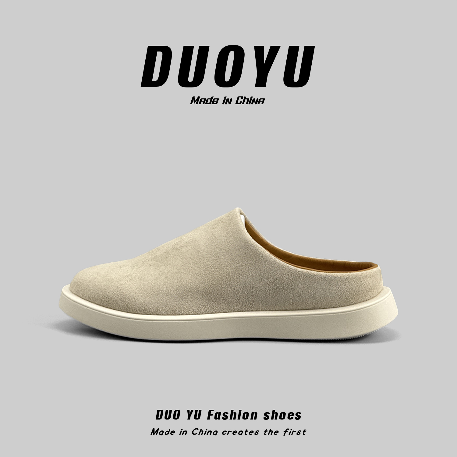 外贸男鞋大码懒人一脚蹬半拖鞋厚底皮面休闲包头拖时尚百搭运动拖