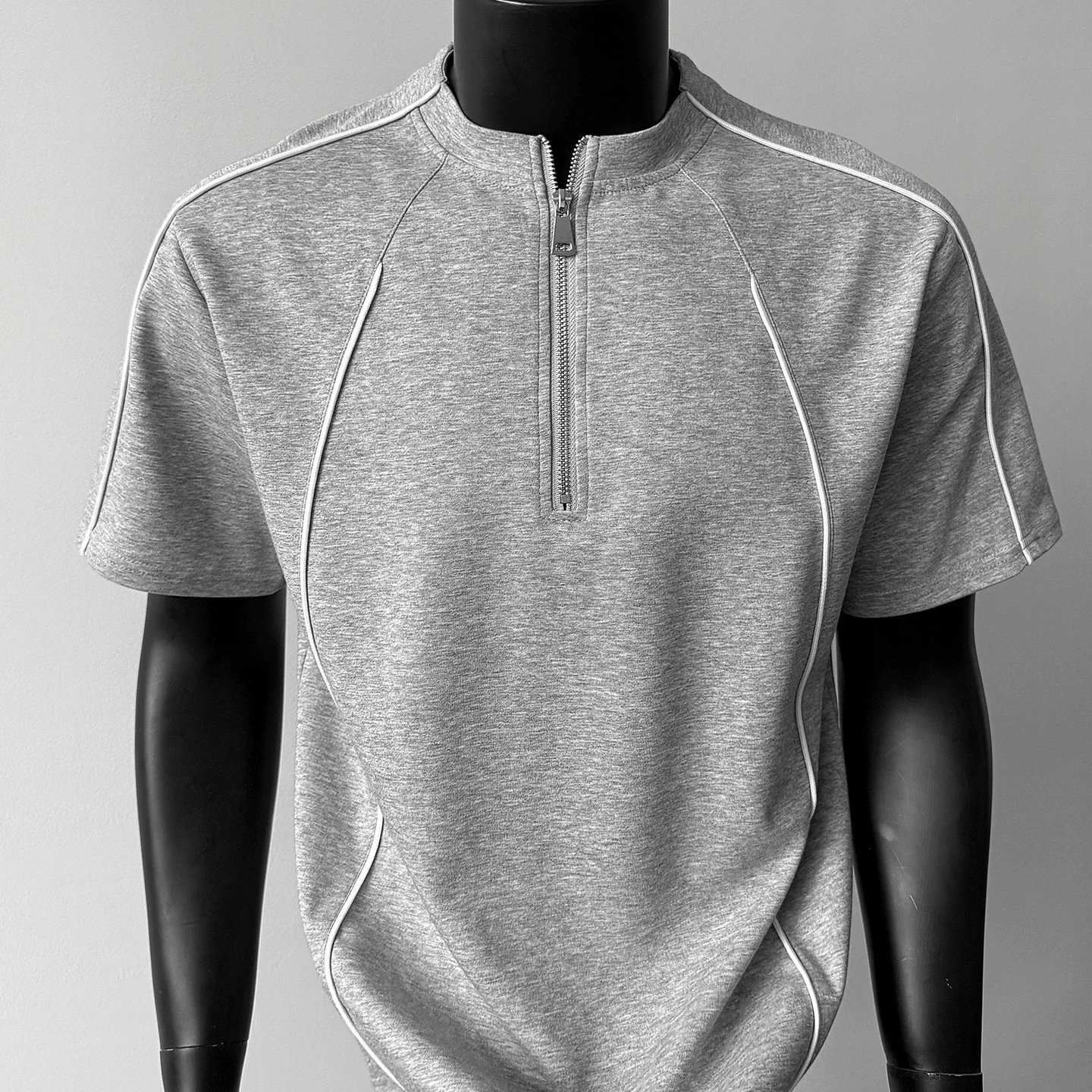 美式高街明辑线半拉炼短袖T恤男夏季小众痞帅潮牌半袖体恤百搭潮