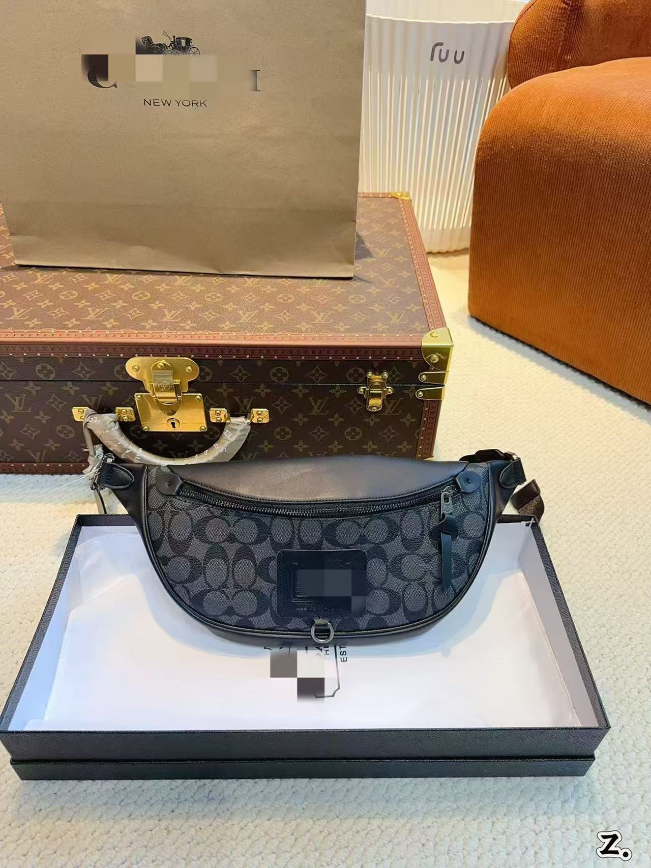 2025奥莱新款男士腰包欧美复古经典标志老花Warren胸包斜挎包7877