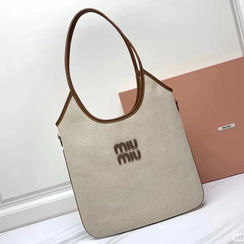 miu缪新款托特包tote大容量购物袋复古时尚帆布单肩手提腋下女包