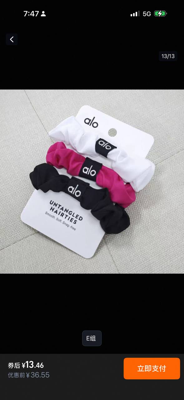 alo发圈跨境纯色发圈法式复古中号束发皮筋肥肠头饰