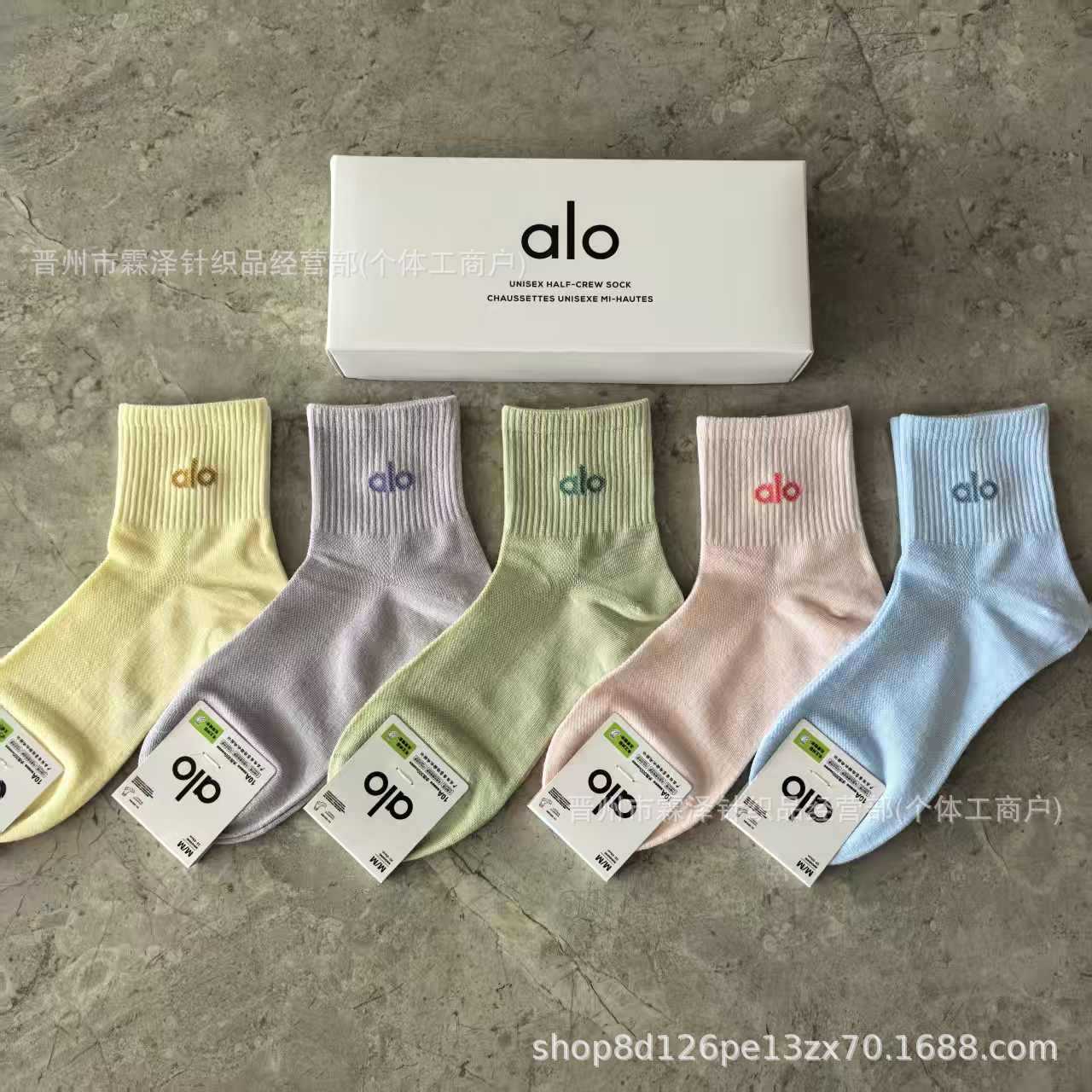 新款alo盒装袜子男女棉袜中筒运动款字母袜四季吸汗透气袜子批发