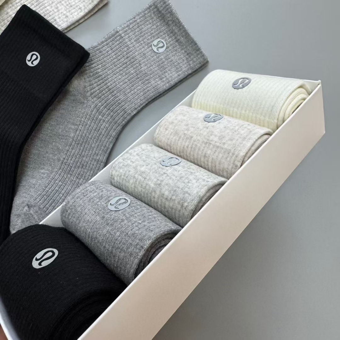 lulu露露logo高品质性价比袜子女春秋季双针棉袜中筒字母盒装批发