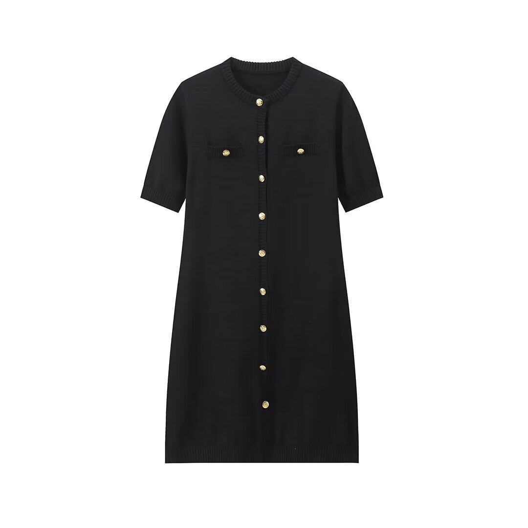 KASLEAD 新款 女装 欧美风时尚简约两色针织短袖纽扣毛衣连衣裙