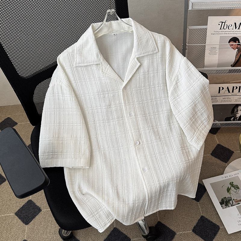 古巴领肌理感短袖衬衫男士夏季宽松薄款半袖衬衣痞帅冰丝垂感上衣