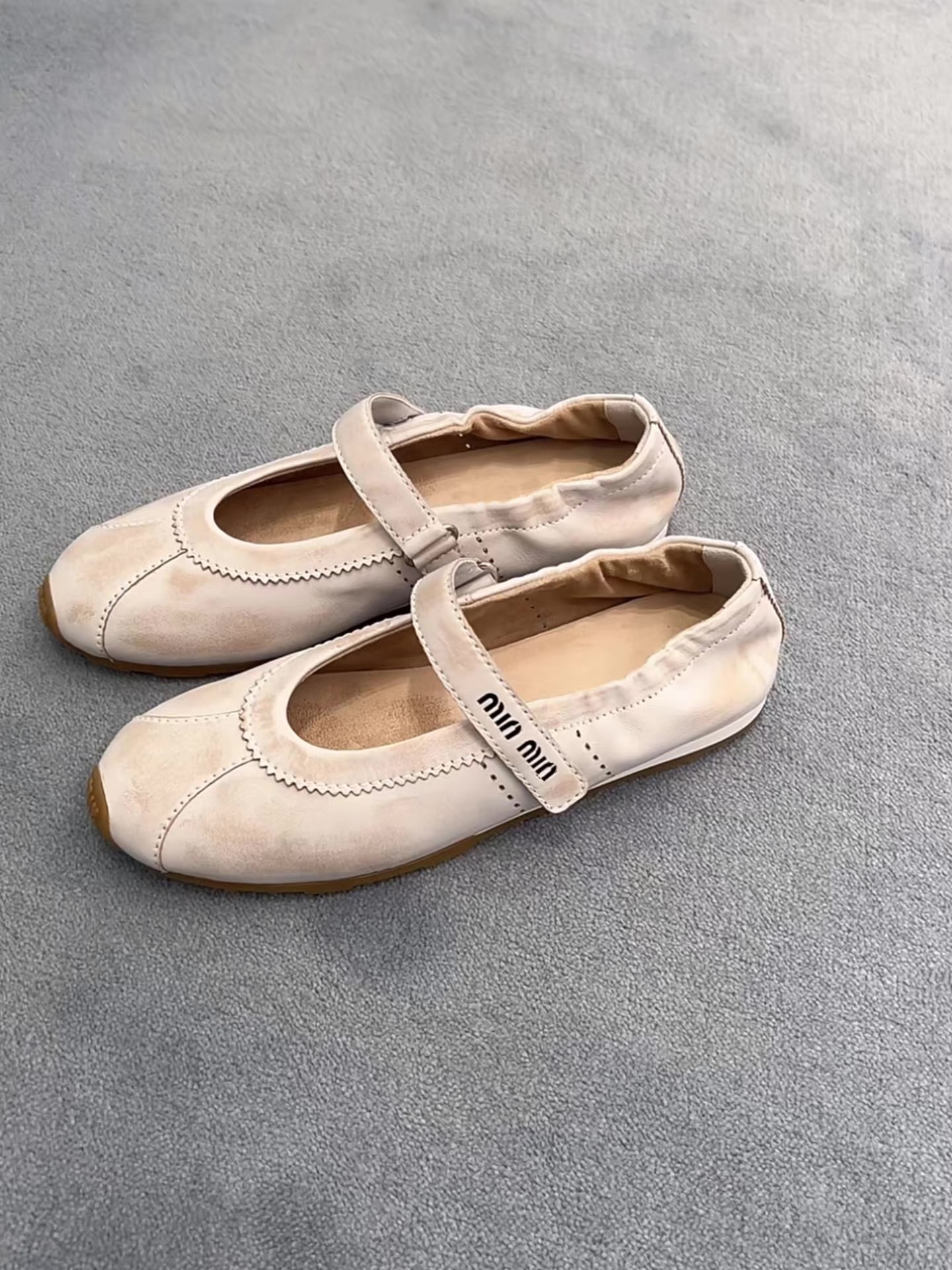 羊皮版~新时尚软底玛丽珍德训鞋女春秋一字魔术贴休闲芭蕾舞单鞋