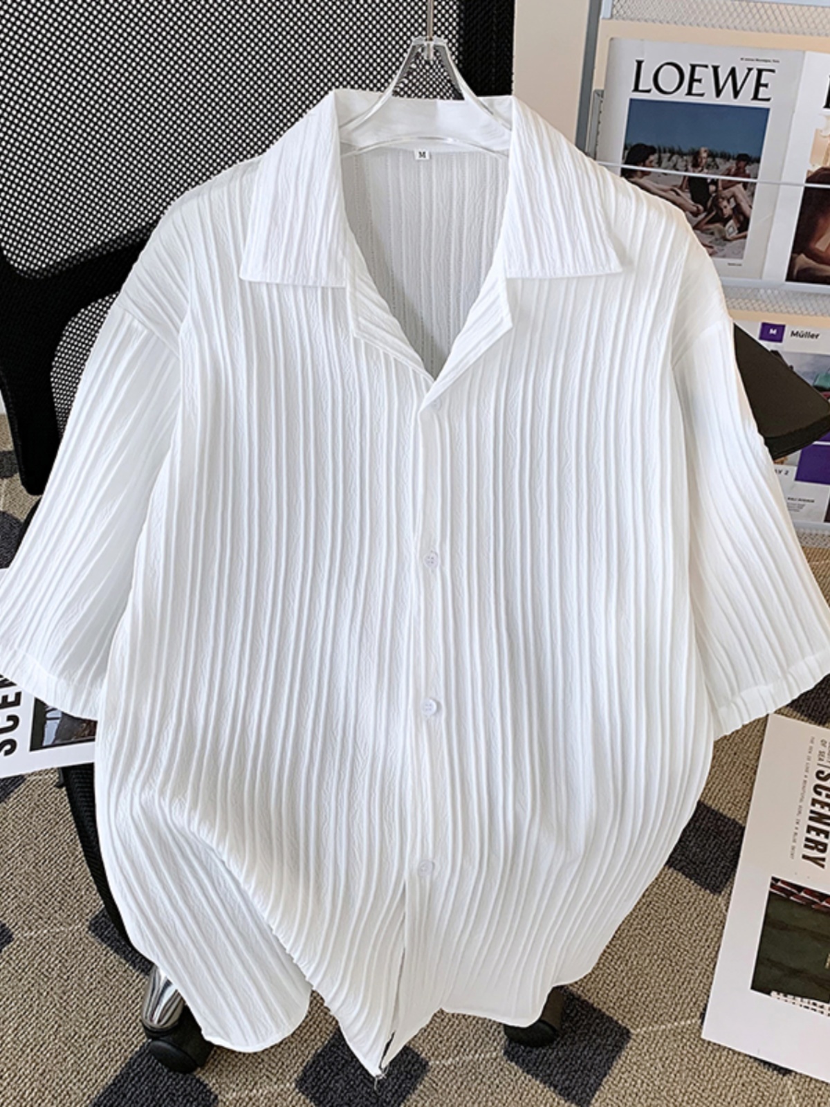 古巴领冰丝衬衣男士潮流轻熟风短袖衬衫宽松夏季高级垂感痞帅上衣