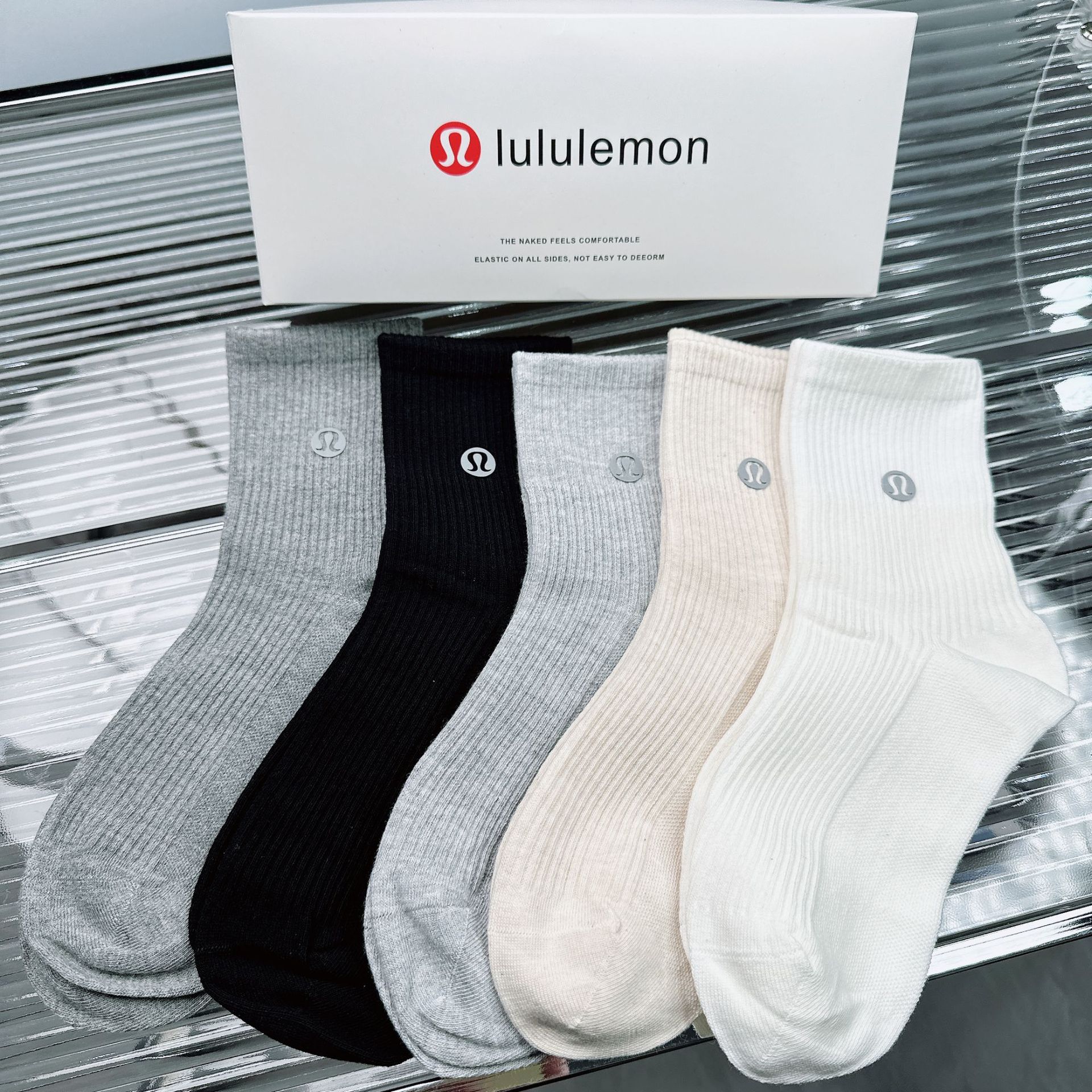 lulu露露袜同款立体反光字母女春秋季双针棉袜盒装快团团货源批发