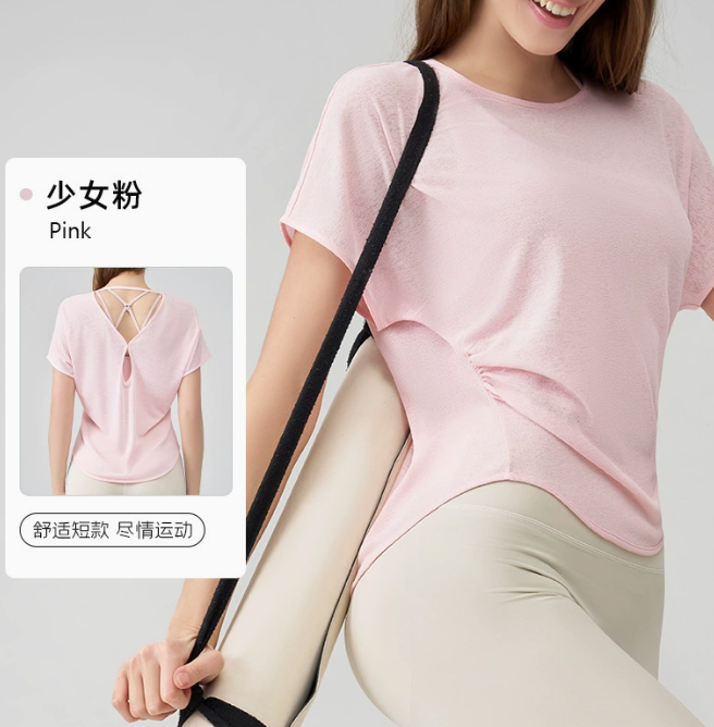 夏季高级感透气普拉提瑜伽服短袖美背薄款褶皱收腰健身运动罩衫女