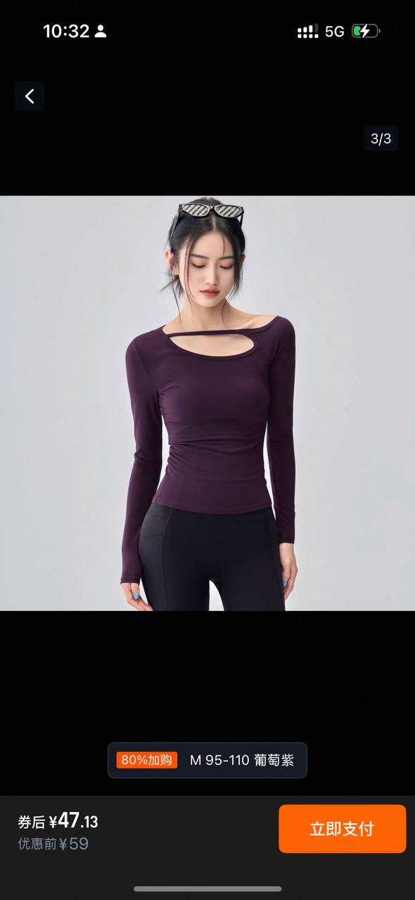 新款不对称露肩长袖运动T恤女修身内搭打底衫显瘦瑜伽上衣设计感