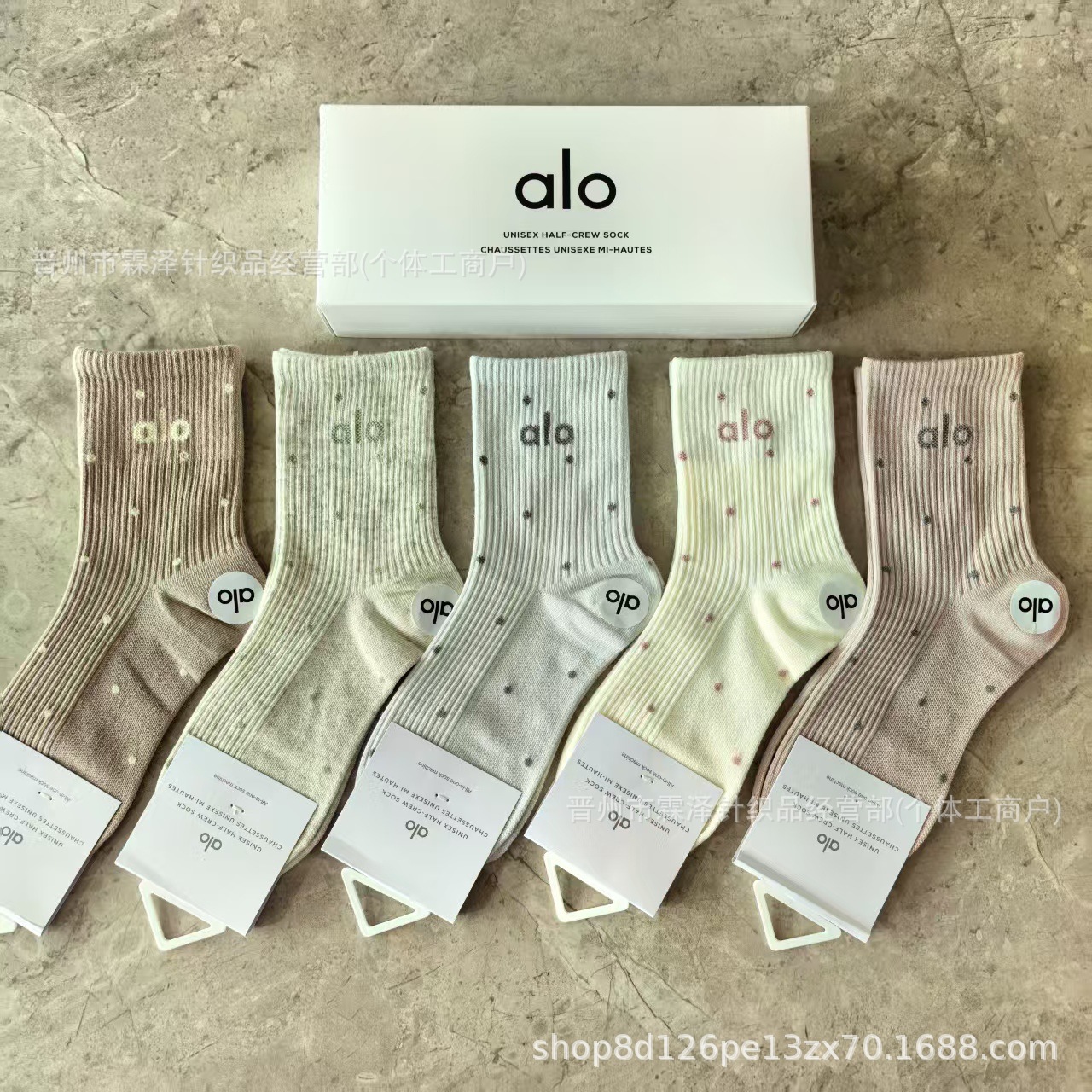 新款alo盒装袜子男女棉袜中筒运动款字母袜四季吸汗透气袜子批发