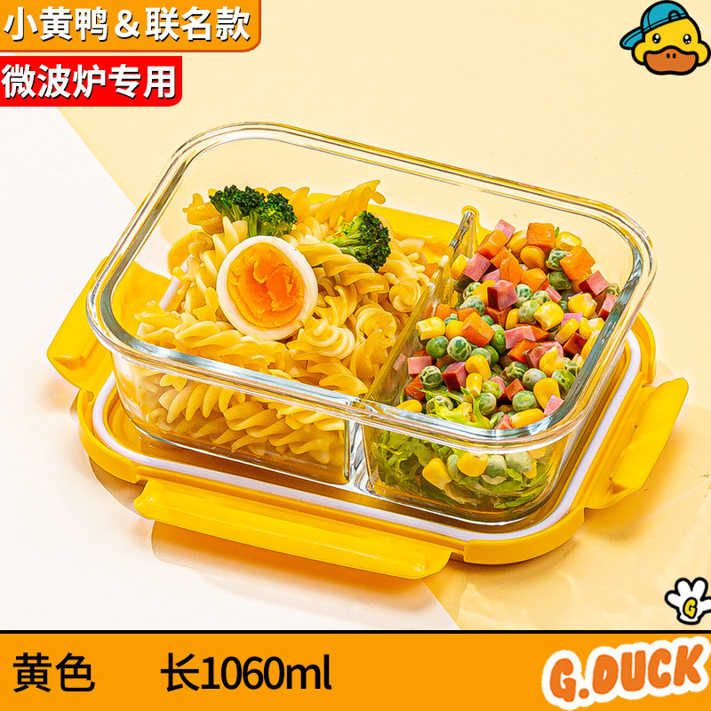 小黄鸭 玻璃饭盒可微波炉加热餐盒上班族带饭便当盒水果保鲜碗女
