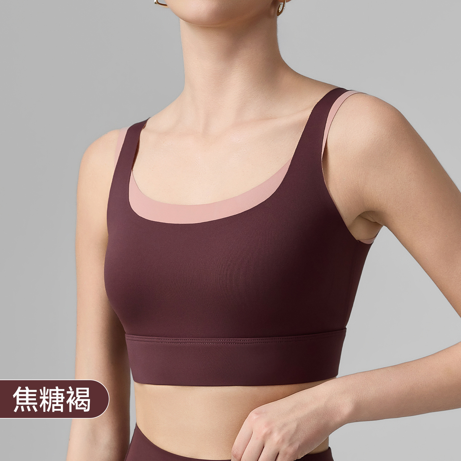 一体式高强度运动内衣女大U型美背瑜伽文胸跑步跳操防震健身上衣