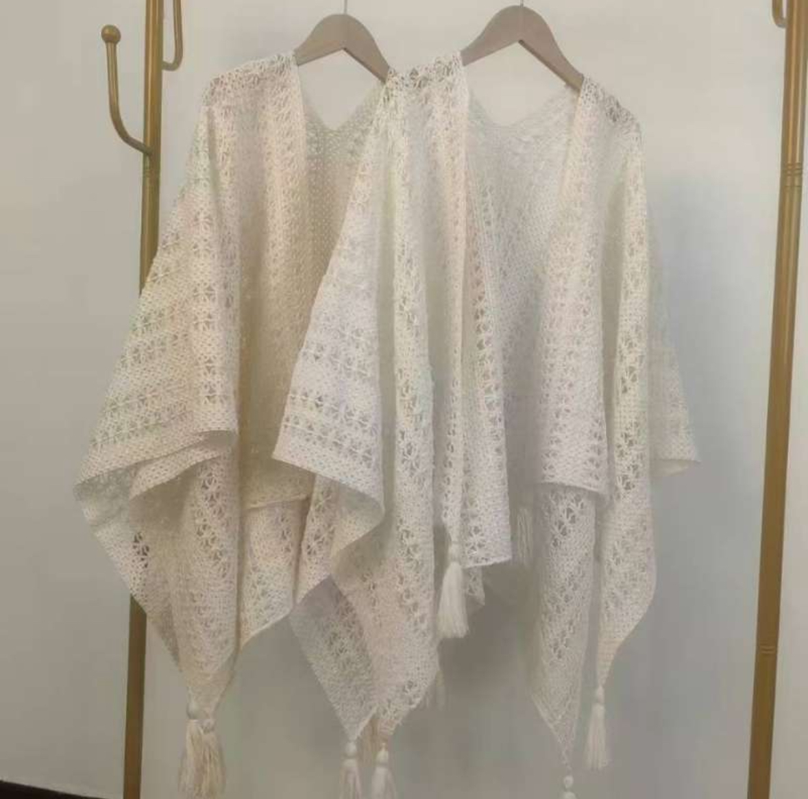 2025新款针织镂空洋气扎染蓝染披肩女外搭斗篷百搭旅游云南大理夏