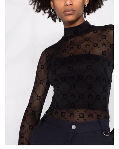 Marine serre月亮黑色植绒网纱打底衫透视性感修身长袖娜扎同款