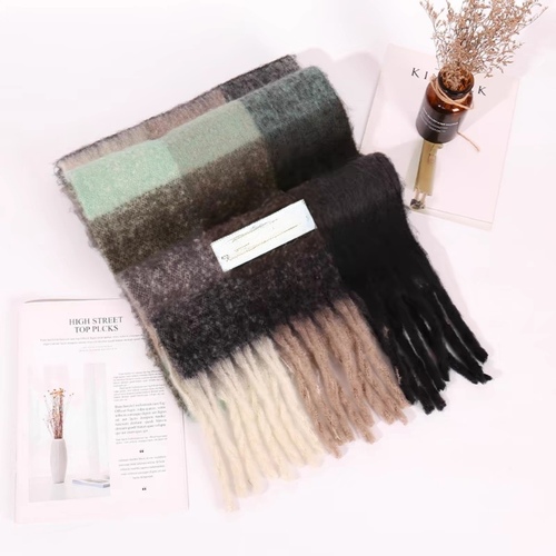 【品质优选】彩色格子毛绒围巾节日送礼字母彷羊绒保暖百搭披肩女