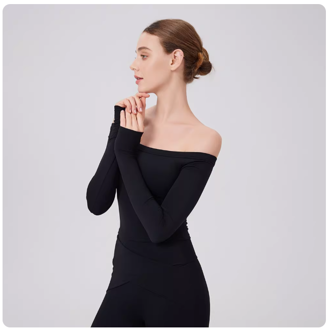 外贸一字领瑜伽服长袖带胸垫跑步速干透气运动文胸外穿健身服上衣