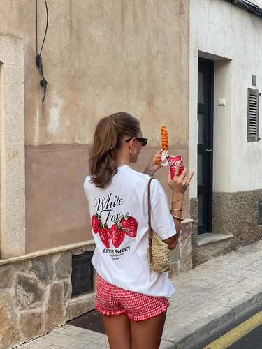 美式覆古vintage夏日ootd穿搭草莓水果印花欧美辣妹宽松短袖t恤女