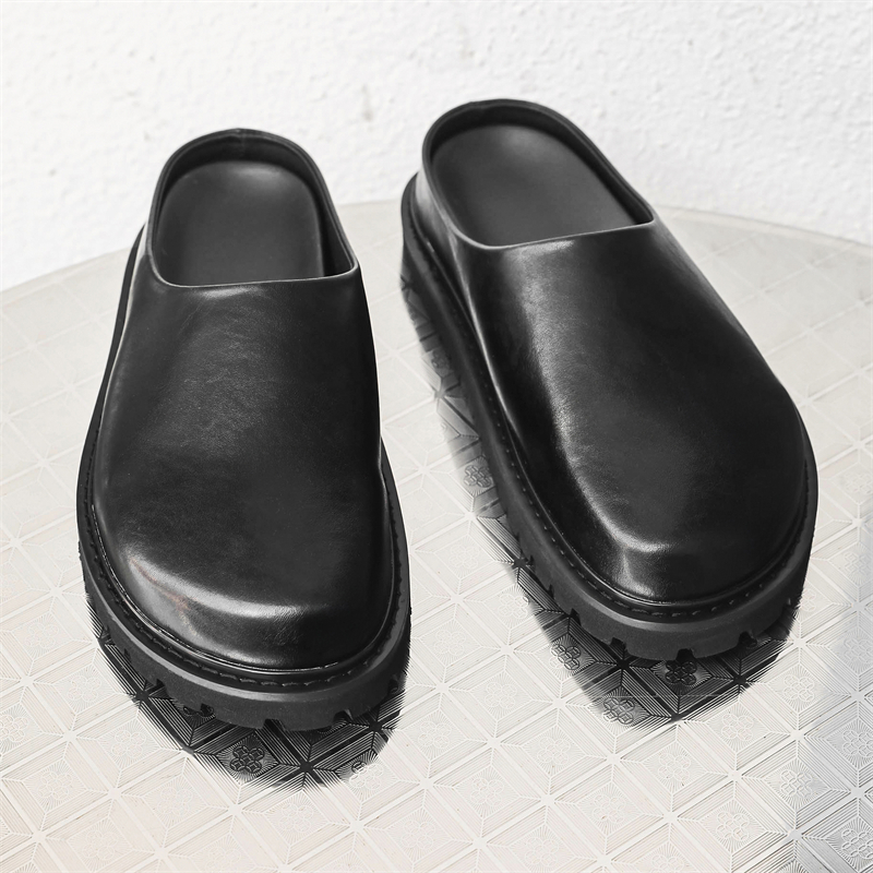 高街ins厚底半拖包头凉鞋男夏季美式覆古懒人皮拖鞋韩版面包拖鞋