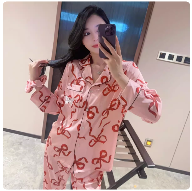 玖野原创睡衣女2025新款春秋长袖冰丝轻奢高级感缎面长裤家居服