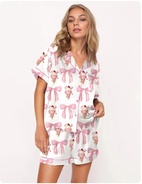 欧美亚马逊独立站跨境数码印花休闲可外穿短袖短裤家居服套装女