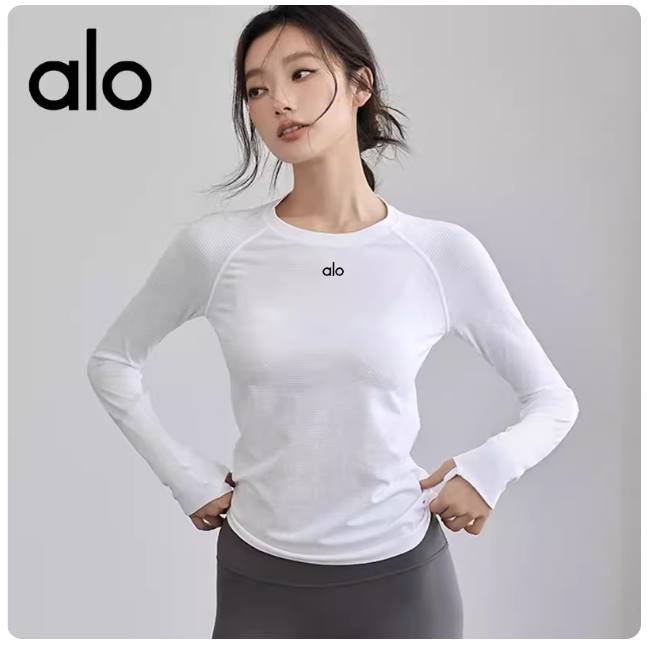 a|o运动瑜伽服女士秋冬速干高弹透气圆领长袖t恤健身房段练健身服